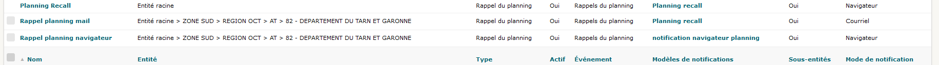 Veuillez nous excuser du délai de réponse, avez-vous une notification dans le modèle de notification « Planning Recall » avec comme mode « Navigateur » ?